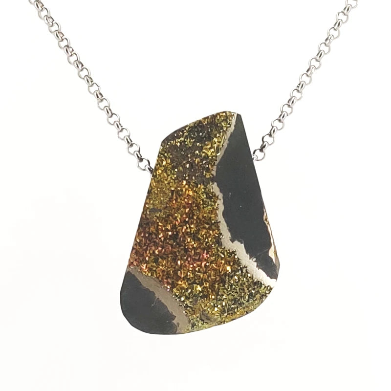Rainbow Pyrite Drusy Pendant Necklace